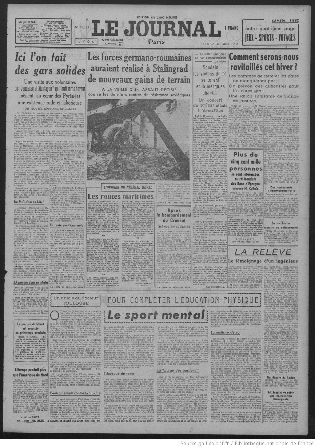 Raymond DAROLLE – Le journal – 22 octobre 1942
