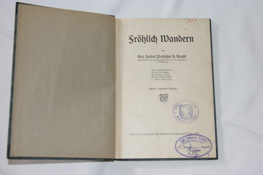 RAYDT, H. Les voyages à pied (Fröhlich Wandern). 80 p., 2e éd., Leipzig, Teubner.
