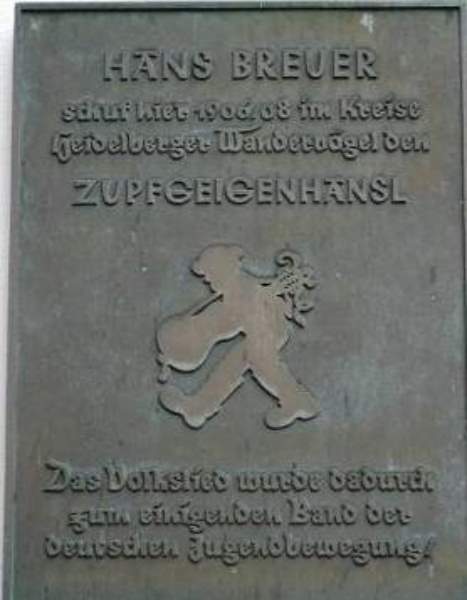 Une plaque a été apposée sur la maison où le Zupfgeigenhansl est né, au Klingenteich 27 à Heidelberg, Allemagne. Dans cette demeure habitaient de nombreux Wandervogel.