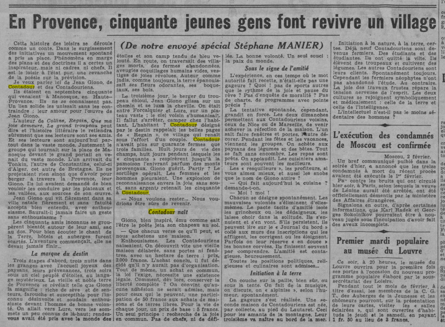 Accueil 1937-02-03_Paris-Soir_En Provence, cinquante jeunes gens font revivre un village_Contadour 1937-02-03_Paris-Soir_En Provence, cinquante jeunes gens font revivre un village_Contadour