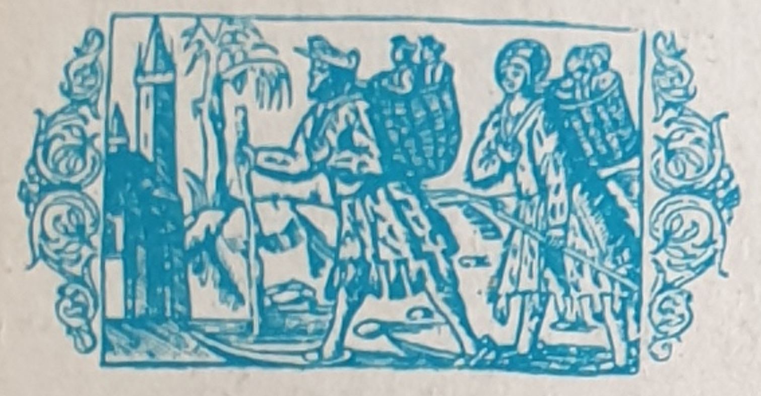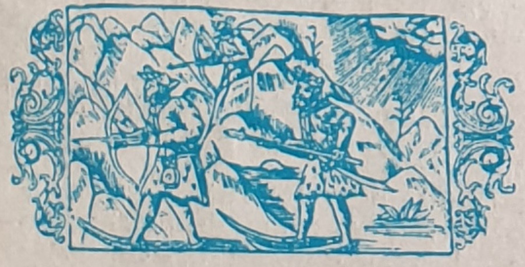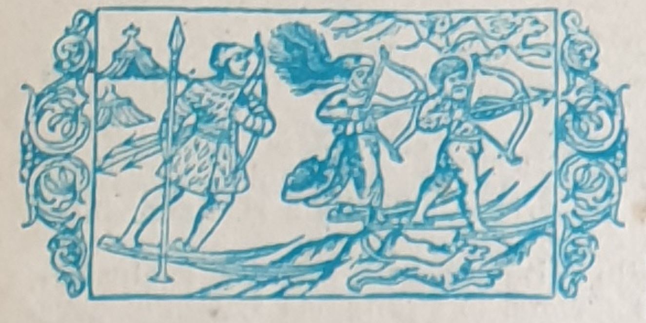Les lettrines représentent des Finnois à la chasse et en voyage (Extraits de la « Chronique Scandinave d’Olaus », Magnus, 1553).